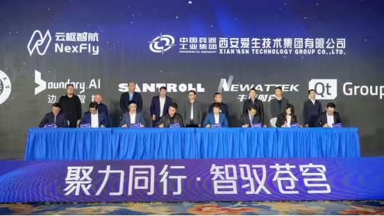 会上,市高新区管委会与安徽云枢智航科技有限公司签署低空生态建设合作备忘录,云枢智航公司与中国兵器爱生集团以及产业链合作伙伴签约。