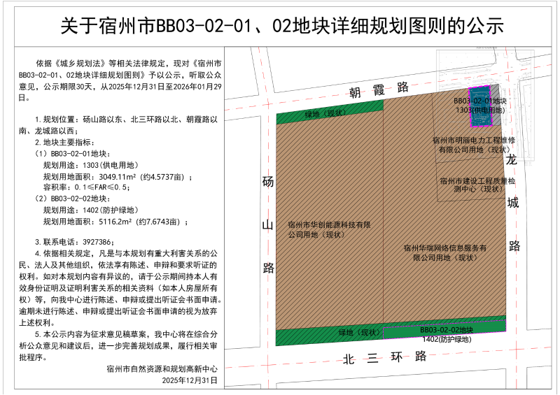 关于宿州市BB03-02-01、02地块详细规划图则的公示