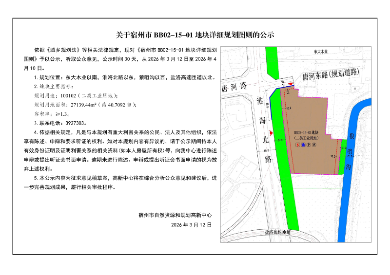 关于宿州市BB02-15-01地块详细规划图则的公示